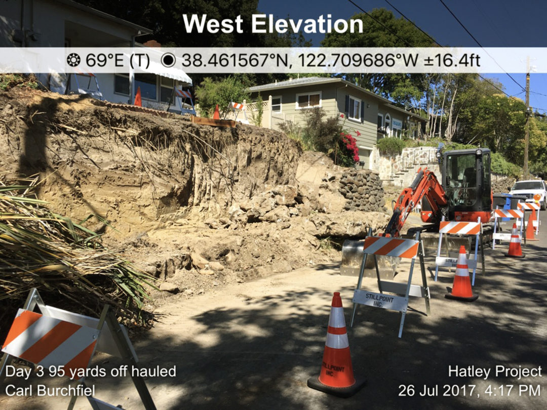 On Danbeck Avenue in Santa Rosa the owners had their rock retaining wall and soils above slide onto the roadway. Caused by the prolonged heavy winter rains in early 2017. Their engineer designed the replacement wall to be a two tiered system of concrete 4’ by 2’ long blocks. After excavations, removal of slide materials and base layer of rock that we placed for the base of the concrete blocks to sit on. Blocks were installed in an overlapping fashion. Drainage was then placed behind these walls.
